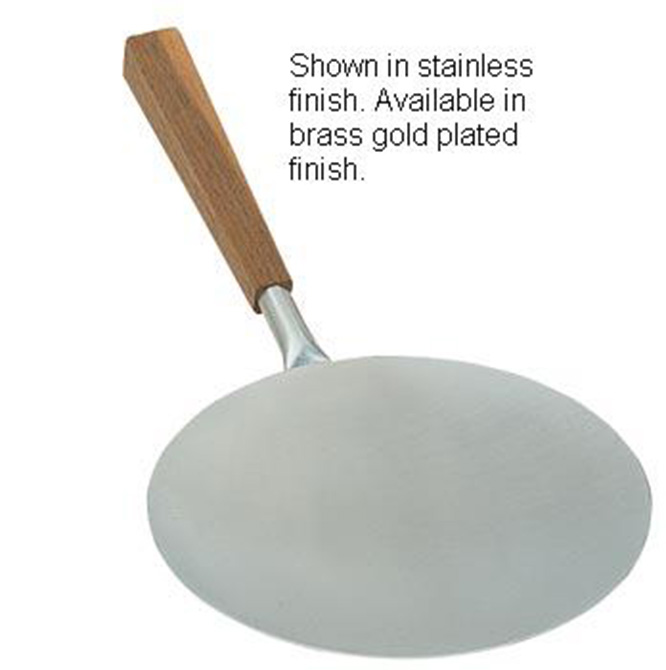 Communion Paten. 24 karat satin gold plated. 7 inch diameter Round walnut handle. Includes deluxe vinyl case.