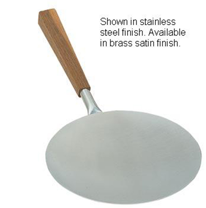 Communion Paten. Brass satin finish. 7 inch diameter Round walnut handle. Includes deluxe vinyl case.