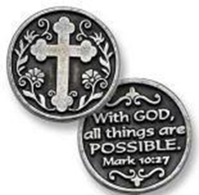 Genuine Pewter. Design on front side and prayer at back. 1-1/4" diameter. Perfect for group buying.