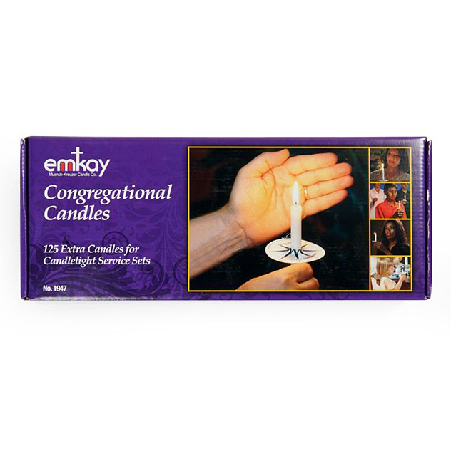 Congregational Candles - White Stearine 0-17/32" x 5" without paper drip protectors, 125 / box. Sold and Priced by the box of 125 pieces.