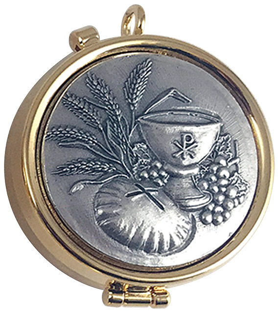 Pyx. 24 karat gold plated. 2 inch x 5/8 inch. 7 host capacity Use with burse K-3110.