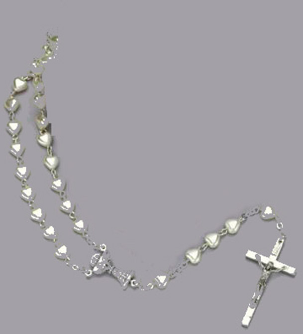 Pearl heart shaped rosary with chalice centerpiece.