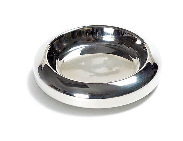 The RemembranceWare: Communion Tray Bread Insert - Silver Finish is made of the same high-end, food grade stainless steel as are all RemembranceWare pieces. It achieves it's beautiful silver shine through a polishing process. The Communion Tray Bread Insert has a peg on the underside to fit in the center hole of the disc (covering only 8 holes), easily holds 32 pieces of bread and still allows disc to carry 32 cups. This piece adds no height to tray. The Communion Tray Bread Insert is 5/8" high and has a diameter of 4 1/2". RemembranceWare pieces are easily cleaned with mild soap and water and a soft cloth.