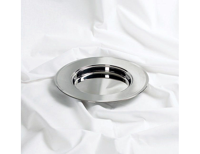 The RemembranceWare: Communion Bread Plate - Silver Finish is made of the same high-end, food grade stainless steel as are all RemembranceWare pieces. It achieves it's beautiful silver shine through a polishing process. The Communion Bread Plate is used for serving bread where a small number of plates are needed. The Communion Bread Plate is standard size (1 1/8" high and has a diameter of 10 1/8"). It has a smooth, flat rim for passing from one hand to another. The edges are double rounded to ensure a smooth and safe feel to this piece. RemembranceWare pieces are easily cleaned with mild soap and water and a soft cloth.