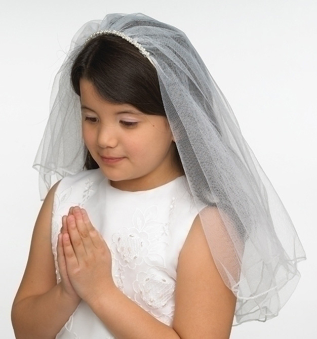 Amelia" style Communion Veil, 24" long with pearl beaded headband.