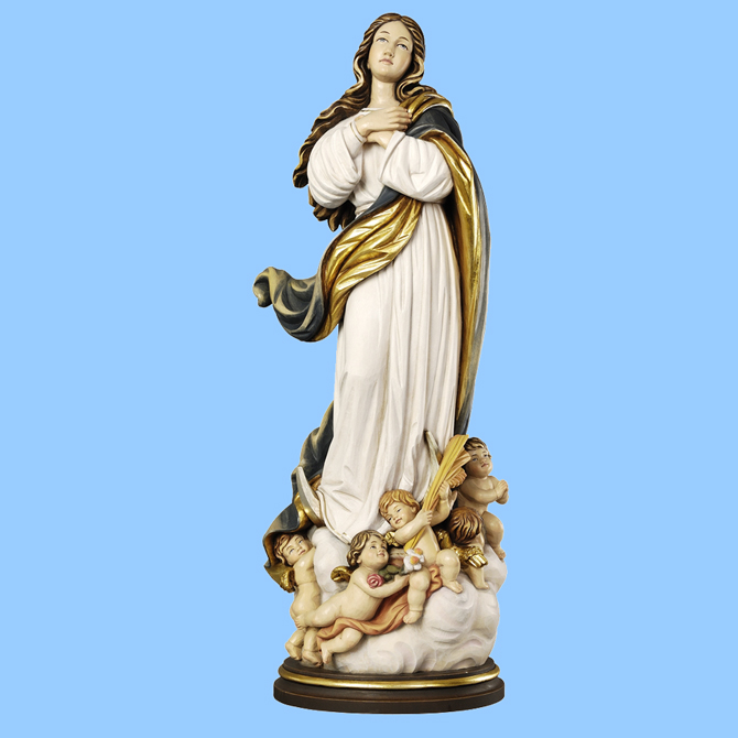 High quality wood carved statue in maplewood, hand finished in traditional colors. Other sizes and finish available, please inquire or see page 380 of our catalog. Made in Italy.