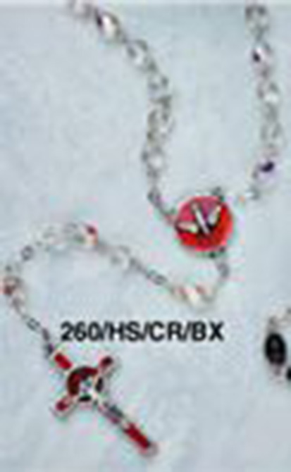Commemorative Confirmation rosary with enameled holy spirit centerpiece and crucifix. Round AB crystal beads 19". Gift boxed with prayer card.