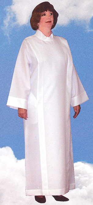 Polyester linen weave lightweight, washable, no ironing needed. Back length 56", Sleeve Length 32".