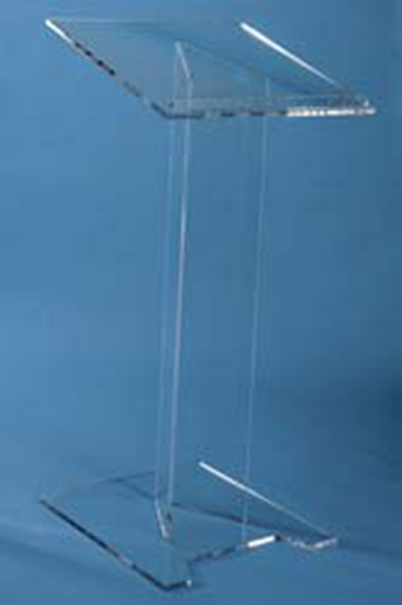 20"w x 18"d x 43"ht., top and base 0-3/8" acrylic, pedestal 0-1/2" acrylic.