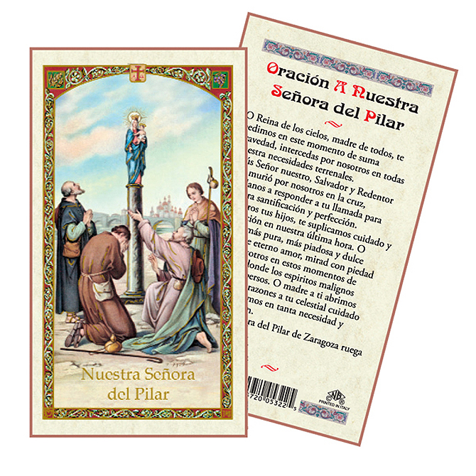 Laminated holy card in full color with a prayer on the back in Spanish. Imported. 2-1/2" x 4-1/2".