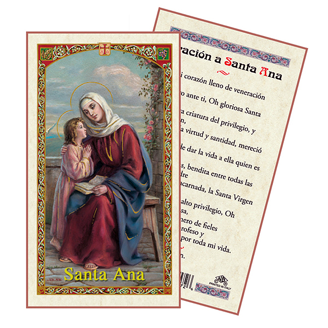Laminated holy card in full color with a prayer on the back in Spanish. Imported. 2-1/2" x 4-1/2".