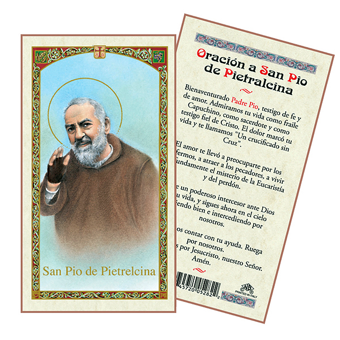Laminated holy card in full color with a prayer on the back in Spanish. Imported. 2-1/2" x 4-1/2".