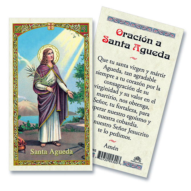 Laminated holy card in full color with a prayer on the back in Spanish. Imported. 2-1/2" x 4-1/2".