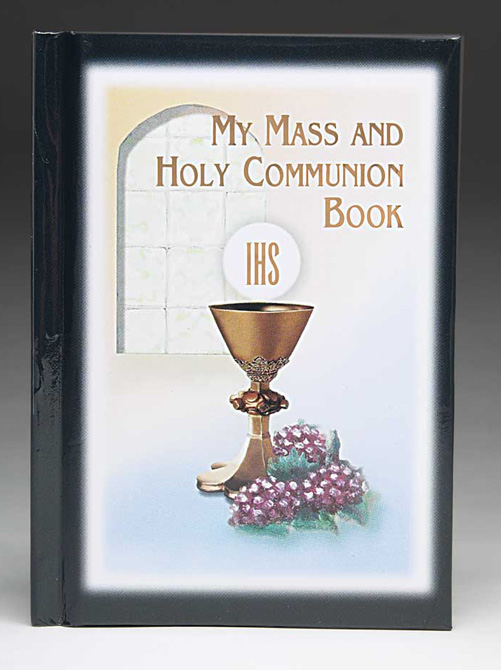 Full color First Light edition of My Mass and Holy Communion Book with padded, gold stamped black cover and gold page edges.