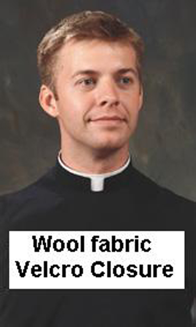 Roman shirtfront, tropical poly-wool with Velcro closure, 21" long, hand washable. White collar sold separately. #2 (1-1/4") height. #3 (1-1/2") available on special order.