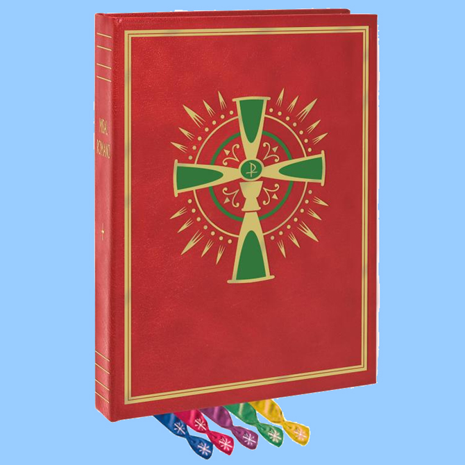 This book is Spanish text. Pulpit sized edition approved specifically for the United States by the U.S. Conference of Catholic Bishops. Size 8-1/2" x 11", hardcover, 1,576 pages with ribbons as shown.
