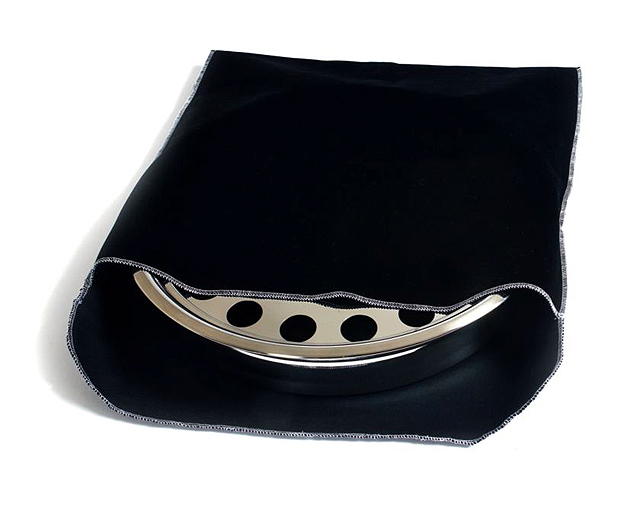 The RemembranceWare: Communion Tray Storage Pouch is designed to protect communionware and offering plates between usage, with a durable outer material and soft protective inner layer. RemembranceWare communionware and offering plates fit nicely and are protected from scratching from metal to metal rubbing during storage. This storage pouch measures 14" x 14" and include a fold in tab on the open end.