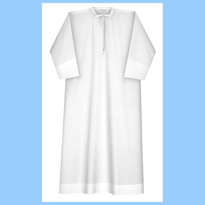 Traditional Clergy Alb, Full cut, 65% polyester and 35% cotton.