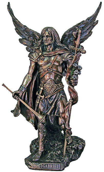 Archangel Gabriel from the Veronese Collection. Lightly hand painted cold-cast bronze statue. 13.75" Boxed.