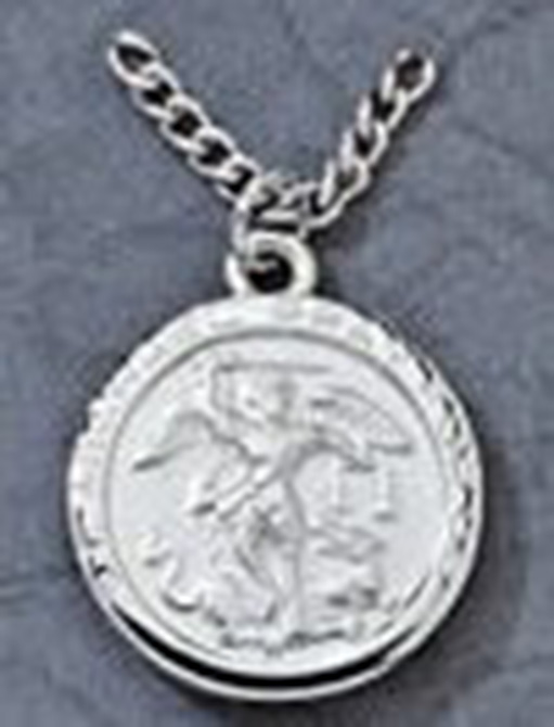 High quality, rhodium plated medal on 24" stainless steel chain. Gift boxed.