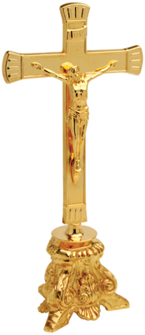 Altar Crucifix. 24 karat gold plated. 10-3/4 inch high, 3-3/4 inch base.