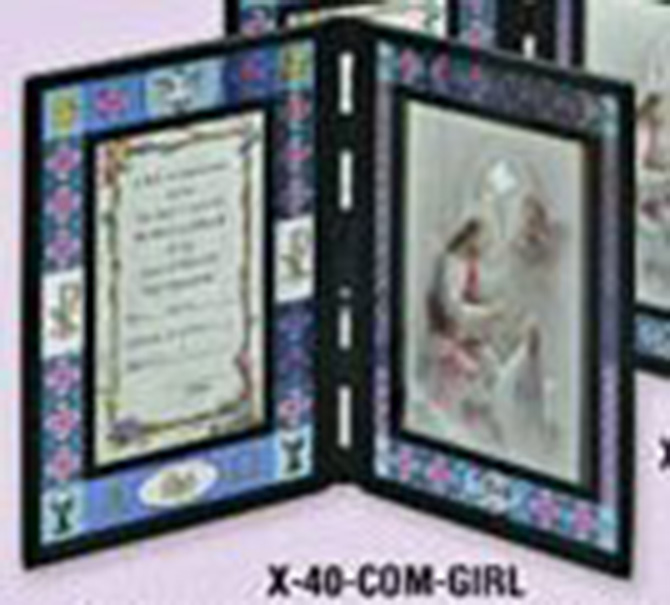 Stained glass commemorative frame, with lithographed prayer card 5" x 7".