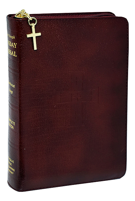 This complete and permanent Saint Joseph Sunday Missal is a comprehensive, all-inclusive Missal that provides everything necessary to participate fully in each Sunday, Vigil, and Holyday Mass. Elegantly presented in a burgundy bonded leather-zipper binding, this Saint Joseph Sunday Missal contains the Lectionary readings and celebrant's and people's prayers (in boldface type) for Sundays and Holydays. This beautiful Missal offers the complete 3-year Cycle (A, B, and C) for all Sunday readings, conveniently repeating prayers for each Cycle to eliminate unnecessary page-turning. Perfect for personal use or gift-giving, this Saint Joseph Sunday Missal, which features a sturdily sewn binding and magnificent four-color illustrations, is designed to be treasured for a lifetime.