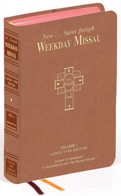 Featuring large, easy-to-read type, this perpetual Saint Joseph Weekday Missal (Vol. I) offers all the Weekday Masses from Advent to Pentecost with all their options and prayers. In a handy size and with a flexible brown cover, this easy-to-use Missal is the perfect companion for anyone who wishes to enhance their participation at Mass during the week.
