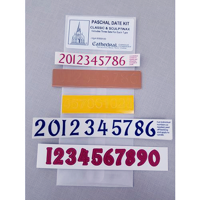 PASCHAL DATE KIT For Cathedral brand Classic & Sculptwax Specify :blue, yellow, gold, large red, or small red decals