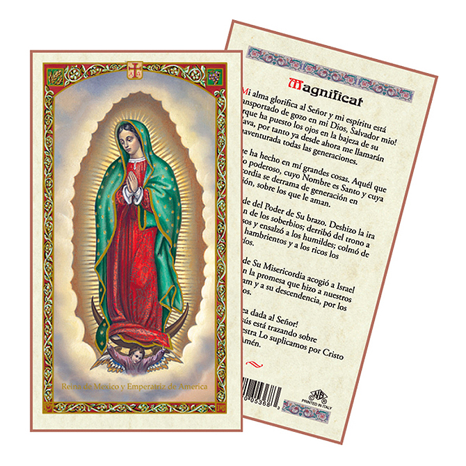 Laminated holy card in full color with a prayer on the back in Spanish. Imported. 2-1/2" x 4-1/2".