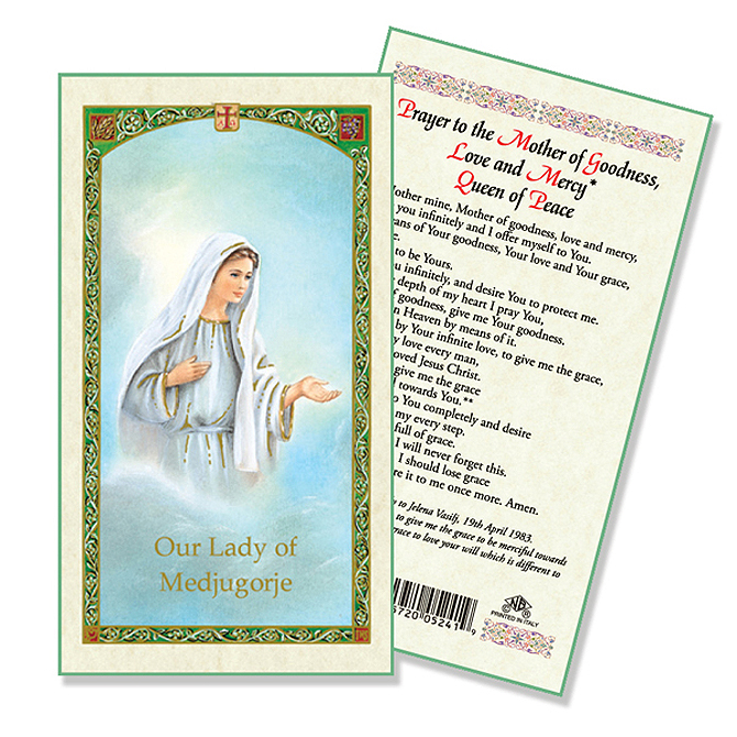 Laminated holy card in full color with a prayer on the back in English. Imported. 2-1/2" x 4-1/2".