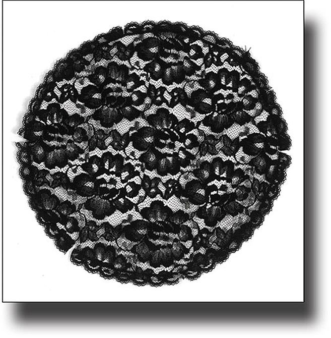 Prayer Cap of lace with lace edge. 8 inch x 9 inch in black. In flexible pouch.