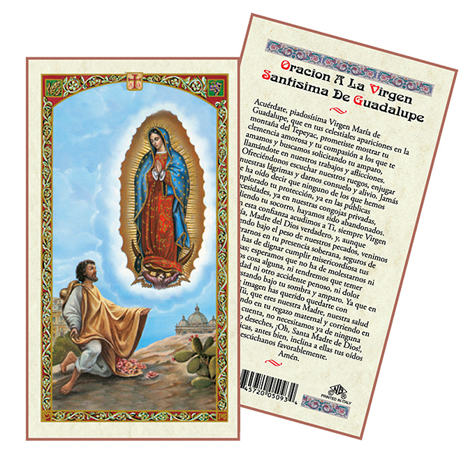 Laminated holy card in full color with a prayer on the back in Spanish. Imported. 2-1/2" x 4-1/2".