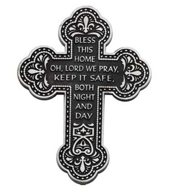 BLESS THIS HOME Wall cross in genuine pewter. 5-1/2" Height x 4" Width