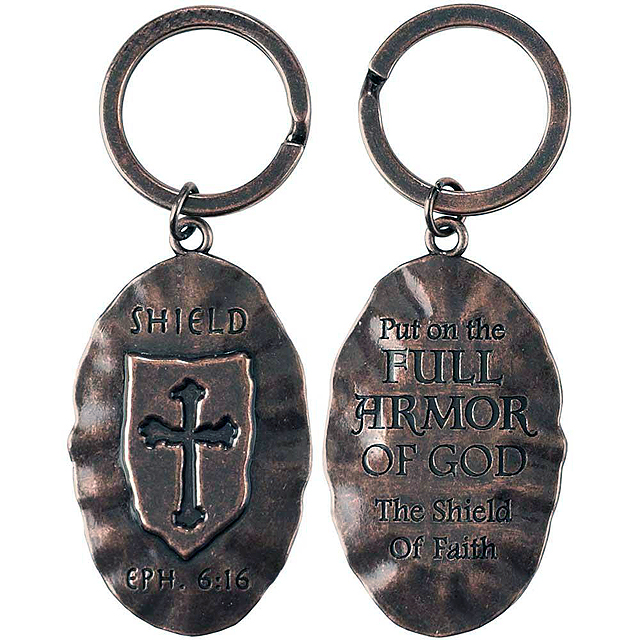 Key Chain-Shield with Cross, Copper