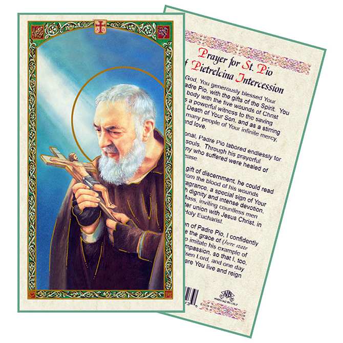 Laminated holy card in full color with a prayer on the back in English. Imported. 2-1/2" x 4-1/2".