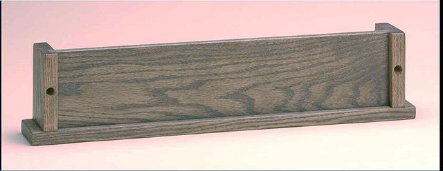 Natural, Light, Medium or Dark oak, 2" deep, 4" high inside. Outside dimensions are 5" high with a 3" projection. (Please specify finish when ordering.)
