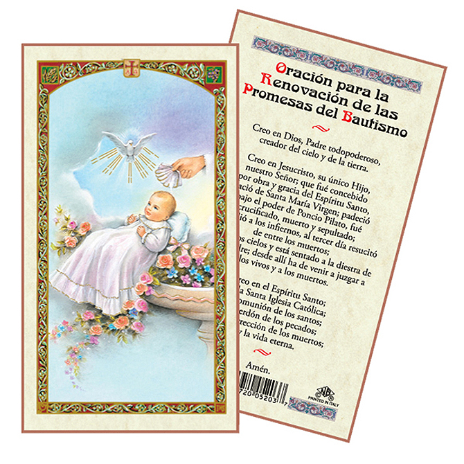 Laminated holy card in full color with a prayer on the back in Spanish. Imported. 2-1/2" x 4-1/2".