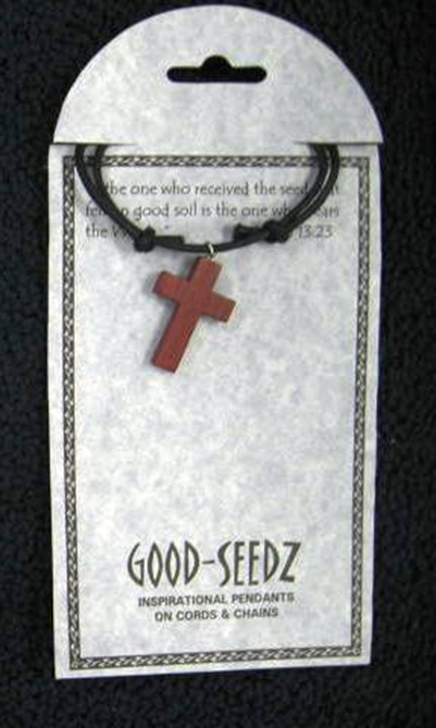 Good-seedz. Small wood brown cross. Ideal way for teens and young adults to wear their faith30" cord.