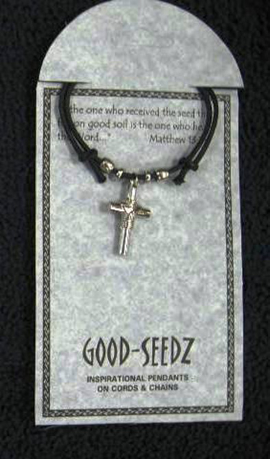 Good-seedz. Silver plated 30" cord. Ideal way for teens and young adult to wear their faith. Perfect for Confirmation and RCIA candidates, high school and youth group retreats.