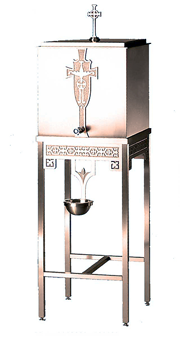 58" high, 17" wide, 23" diameter High polish bronze construction with 10 gallon stainless steel interior tank.