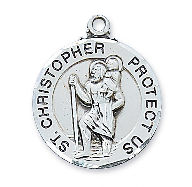 Sterling Silver medal is die struck on 24" stainless steel chain and gift box.