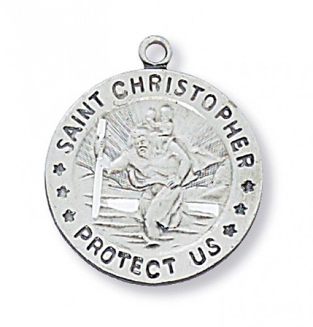 Sterling silver medal on 18" stainless steel chain. Gift boxed.