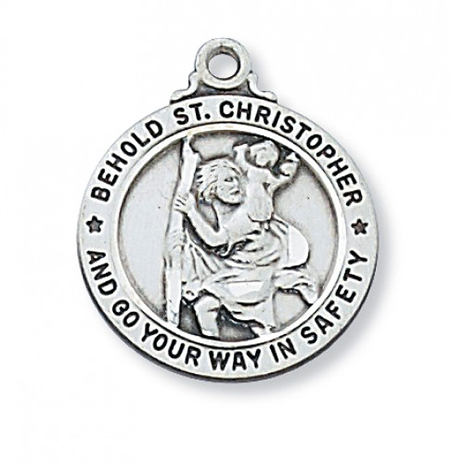 Sterling silver medal on 20" stainless steel chain. Gift boxed.