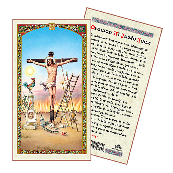 Laminated holy card in full color with a prayer on the back in Spanish. Imported. 2-1/2" x 4-1/2".