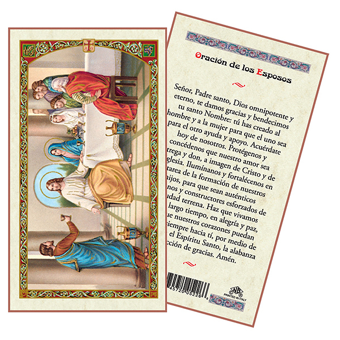 Laminated holy card in full color with a prayer on the back in Spanish. Imported. 2-1/2" x 4-1/2".
