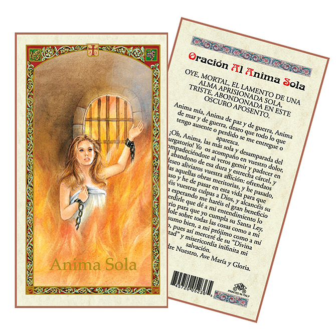 Laminated holy card in full color with a prayer on the back in Spanish. Imported. 2-1/2" x 4-1/2".
