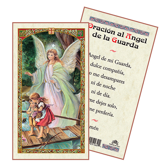 Laminated holy card in full color with a prayer on the back in Spanish. Imported. 2-1/2" x 4-1/2".