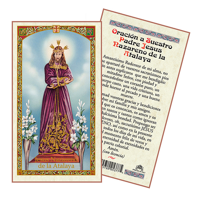 Laminated holy card in full color with a prayer on the back in Spanish. Imported. 2-1/2" x 4-1/2".