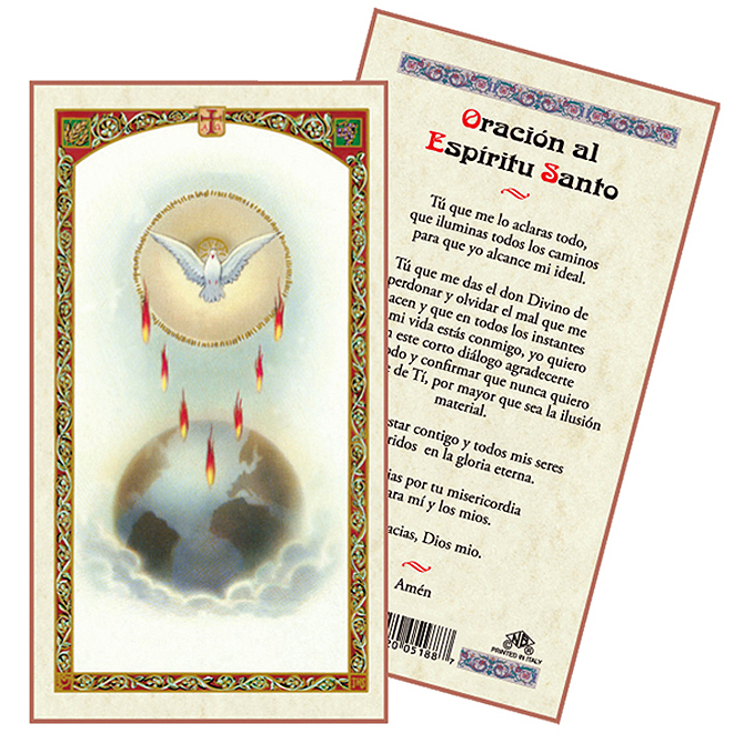 Laminated holy card in full color with a prayer on the back in Spanish. Imported. 2-1/2" x 4-1/2".